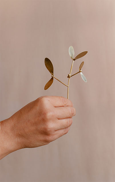 En sculpture unique ou en jardin foisonnant, ces branches couleur or dévoilent la finesse de leurs silhouettes et la douceur des reflets du laiton.