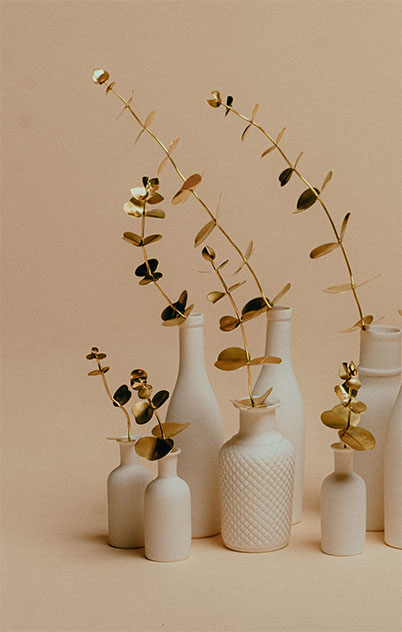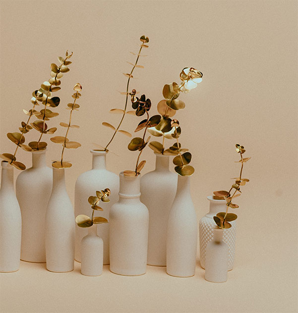 Graphiques et poétiques, ces eucalyptus éternels sauront vous enivrer. Trois formats s’harmonisent à une gamme de vases en biscuit de porcelaine.