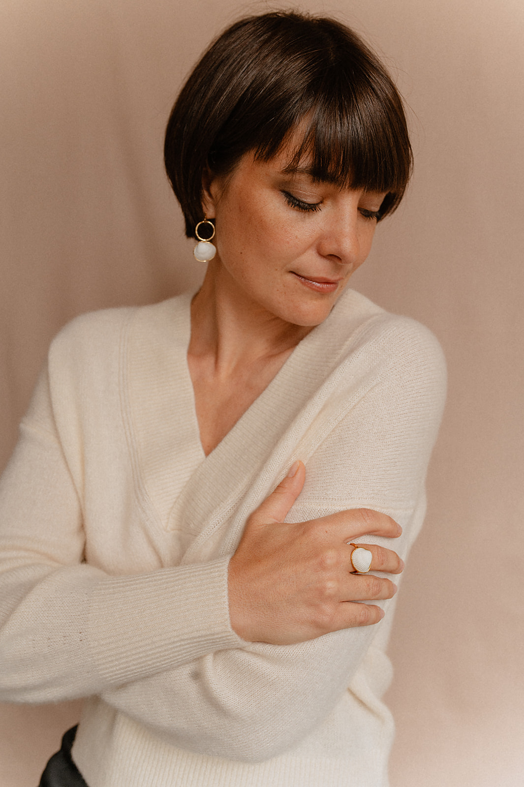 Les bijoux Vénus rendent hommage à cette essence, entre courbes organiques, textures martelées et éclats lumineux, comme des fragments intimes portés contre la peau.